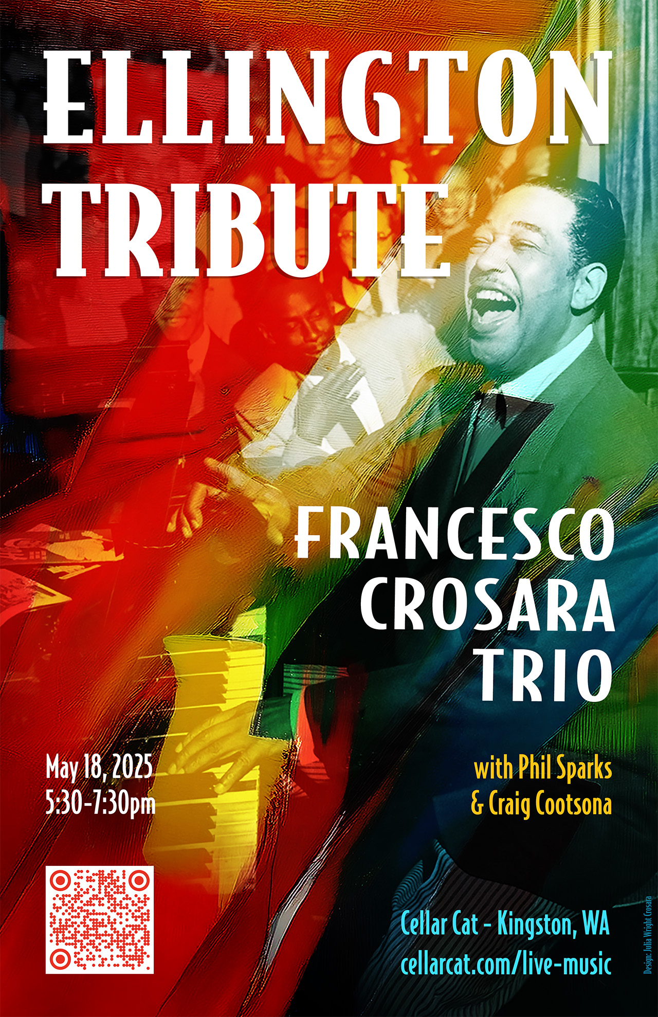 - Francesco Crosara Trio – Ellington Tribute at Cellar CatCELLAR CAT, May 18th, 2025, 5:30 to 7:30 PM FRANCESCO CROSARA TRIO: ELLINGTON TRIBUTE – Francesco Crosara, piano, Phil Sparks, … Continue reading Francesco Crosara Trio – Ellington Tribute at Cellar Cat