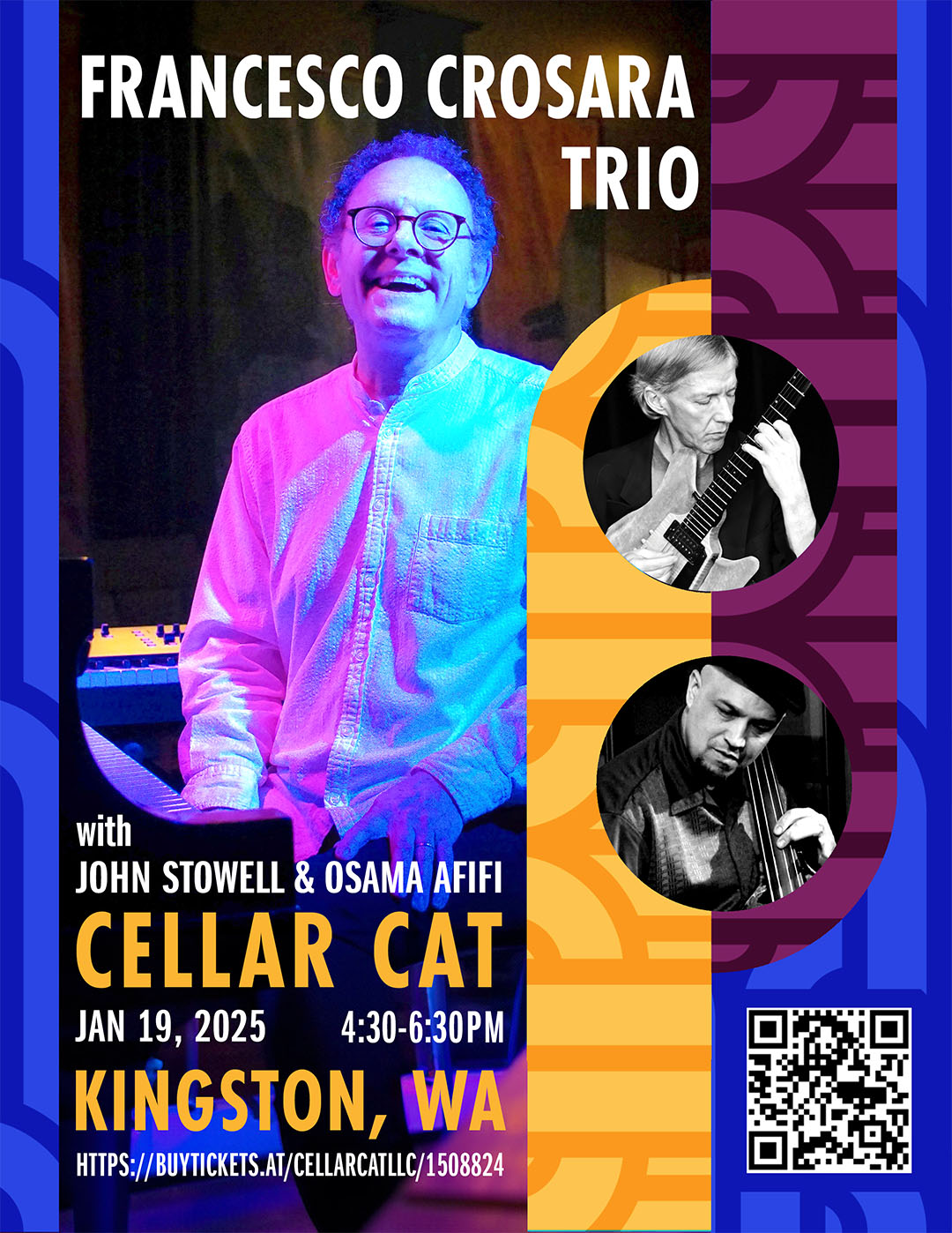 - Francesco Crosara Trio at Cellar CatPianist Francesco Crosara returns to Cellar Cat, this time featuring a highly dynamic trio with Tacoma-based jazz dynamo Osama Afifi … Continue reading Francesco Crosara Trio at Cellar Cat