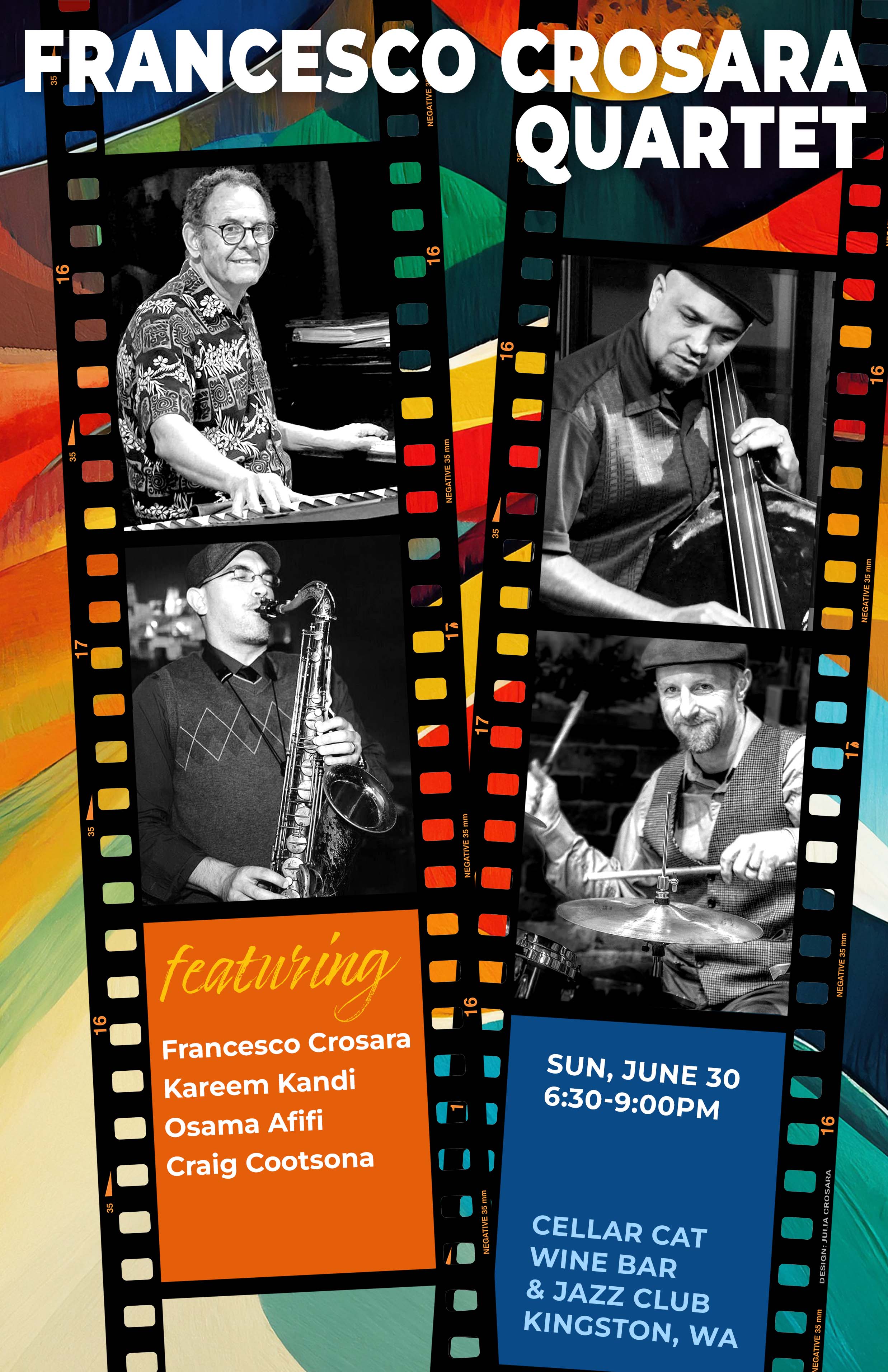 - Francesco Crosara Quartet with Special Guest Kareem Kandi at Cellar CatFrancesco Crosara quartet returns to Cellar Cat on June 30th, 2024, this time featuring Tacoma saxophonist Kareem Kandi! Coming off … Continue reading Francesco Crosara Quartet with Special Guest Kareem Kandi at Cellar Cat