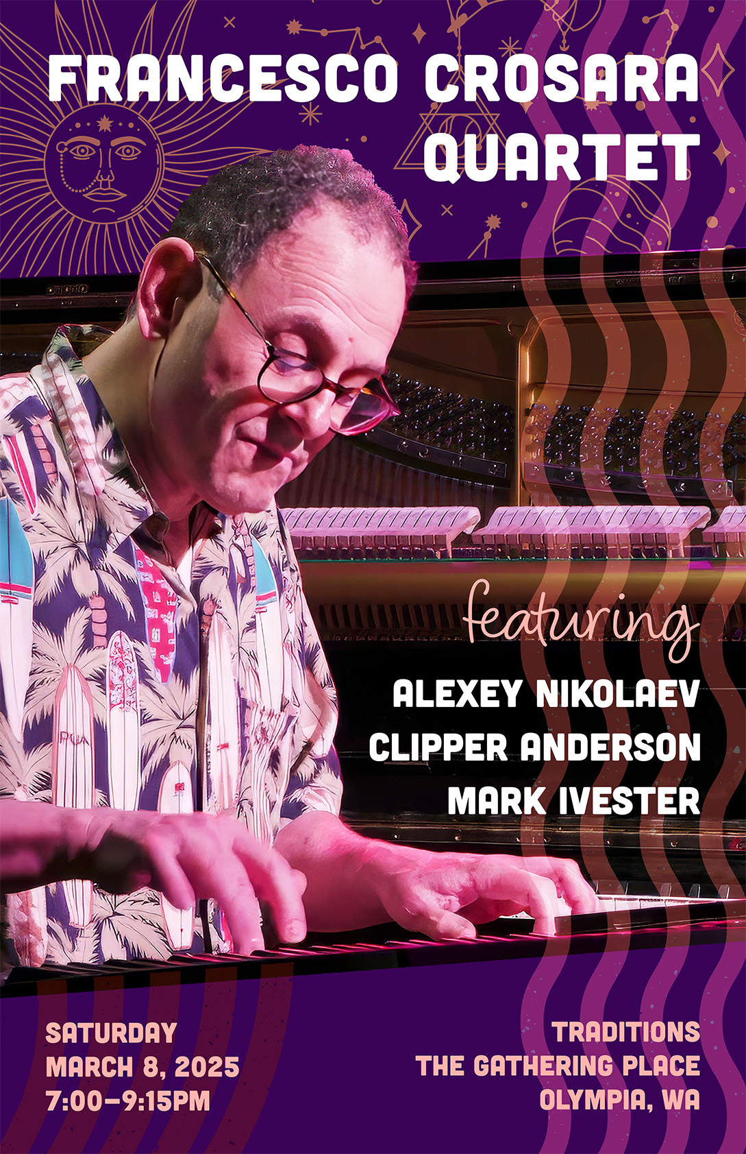 - Francesco Crosara Quartet at Seattle Jazz FellowshipSEATTLE JAZZ FELLOWSHIP: January 30th, 2025 FRANCESCO CROSARA QUARTET: Francesco Crosara, piano, Alexey Nikolaev, saxophones, Clipper Anderson, bass, Mark Ivester, … Continue reading Francesco Crosara Quartet at Seattle Jazz Fellowship