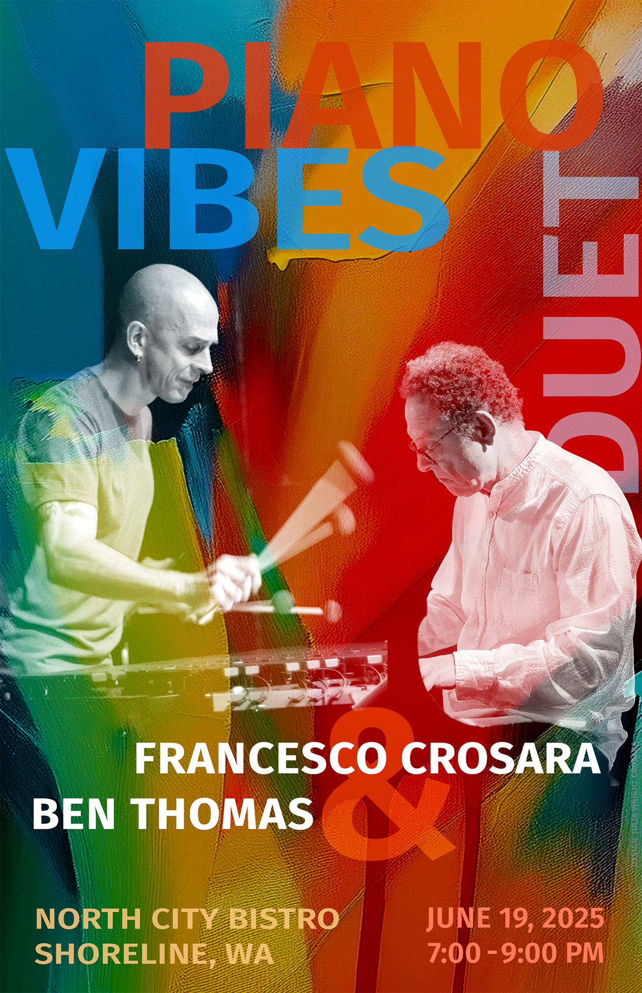 - Francesco Crosara & Ben Thomas – Piano & Vibes Duet at NCBNORTH CITY BISTRO, June 19th, 2025, 7 to 9 PM PIANO / VIBES DUET: Francesco Crosara, piano, Ben Thomas, vibes … Continue reading Francesco Crosara & Ben Thomas – Piano & Vibes Duet at NCB