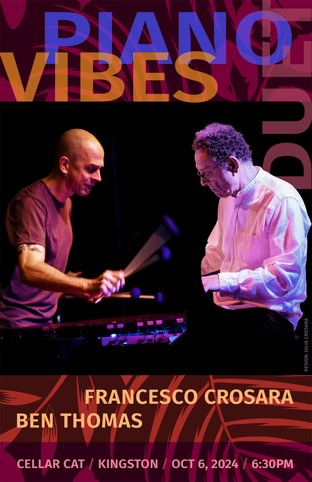 - Francesco Crosara & Ben Thomas Piano & Vibes Duet at Cellar CatCELLAR CAT, October 6th, 2024 PIANO / VIBES DUET: Francesco Crosara, piano, Ben Thomas, vibes The Cellar Cat is proud … Continue reading Francesco Crosara & Ben Thomas Piano & Vibes Duet at Cellar Cat